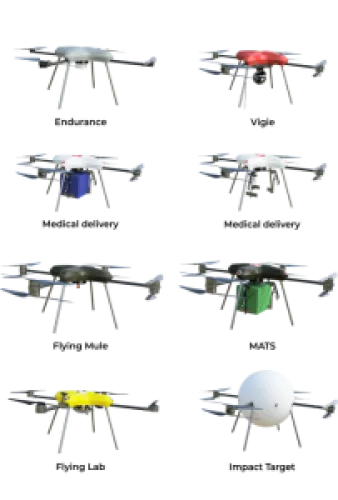 VERSATYL MULTI-ROTORS UAV : Multi-missions and heavy lift modular Drone. HANDOVER 2 : Ground control station and Radio Relay. HARDWARE AND SOFTWARE Lab for specific requests.